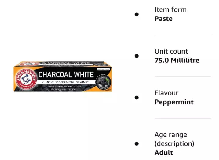 Arm & Hammer Charcoal White Toothpaste, 75ml