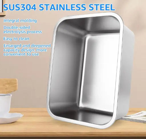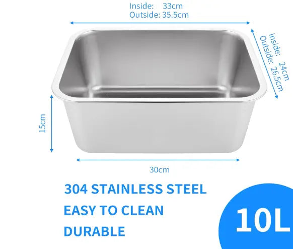 Aselected Washing up Bowl, 304 Stainless Steel Large Rectangular 10 Litre Washin